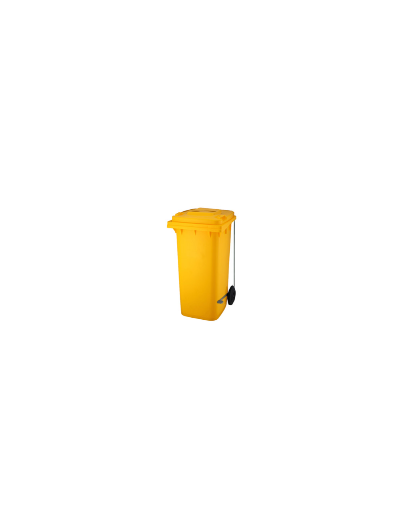 Balde de lixo amarelo de com pedal de 120 litros.
